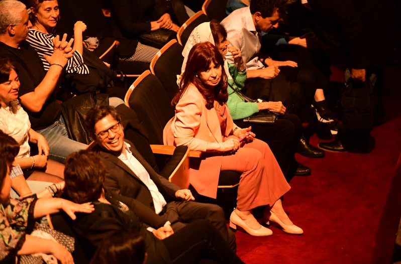 El ingreso de ambos a la sala fue el momento más tenso. “Presidenta, Cristina presidenta”, cantaban en una de las bandejas. Se entrecruzaban algunos silbidos. Kicillof esperó unos segundos a que esos cánticos aflojen para saludar a las gradas. Allí tomó la posta la gente que respalda al gobernador. “Axel querido, el pueblo está contigo”, le cantaron.