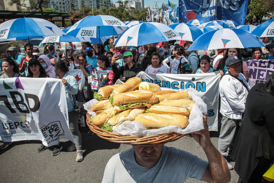 La marcha salió desde la puerta del Ministerio de Desarrollo Social. Los manifestantes, en su mayoría trabajadores populares de Caba y el Conurbano, se concentraron en la 9 de Julio para plantear la otra demanda de su jornada de protesta: el envío de alimentos a los comedores y merenderos. Según denuncian, a los comedores todavía no llegó el refuerzo de alimentos que el Ministerio se comprometió a mandar en octubre que ya está finalizando y no hay novedades.