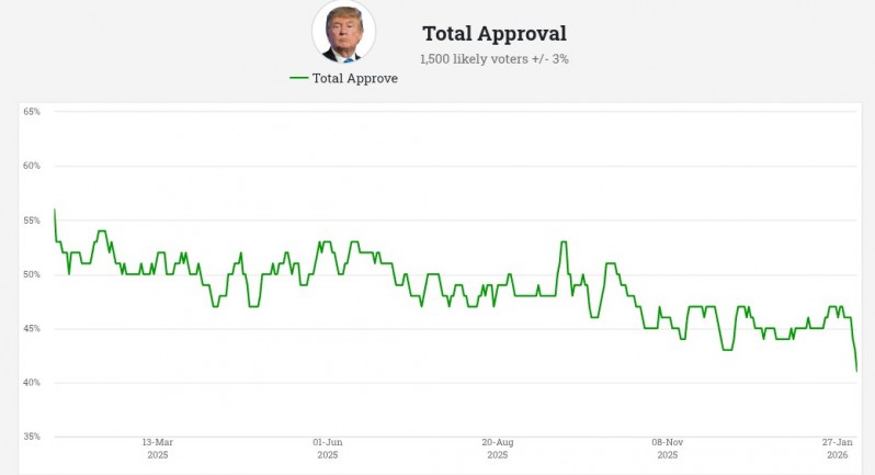 En ese marco, hay un 51% lo desaprueba firmemente y un solo el 26% que lo aprueba, confirmando que el núcleo duro se está achicando. Además, el índice de aprobación, según Marist, ha estado por debajo de 40 desde noviembre.